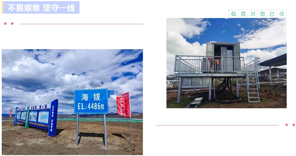 从前期方案到后期调试送电,森源人始终践行“以顾客为关注焦点”的服务承诺。项目现场环境恶劣,高寒缺氧,条件艰苦,即使入夏后依旧积雪遍布,但森源工程师不畏艰难,坚守一线,为项目全容量并网发电提供有力保障。