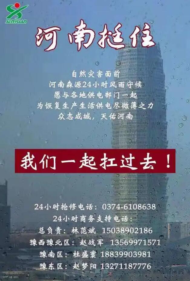 在暴雨灾害发生后,公司就积极与河南网络买球(中国)各地市公司、郑州铁路局以及地铁公司主动联系沟通,是否需要森源电气配合抢修设备等系列工作。后续森源电气公司将积极持续提供最优服务,为抢险救灾,保障人民生活贡献森源力量。