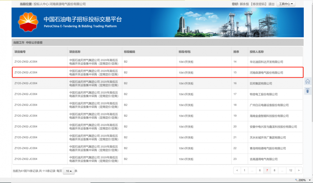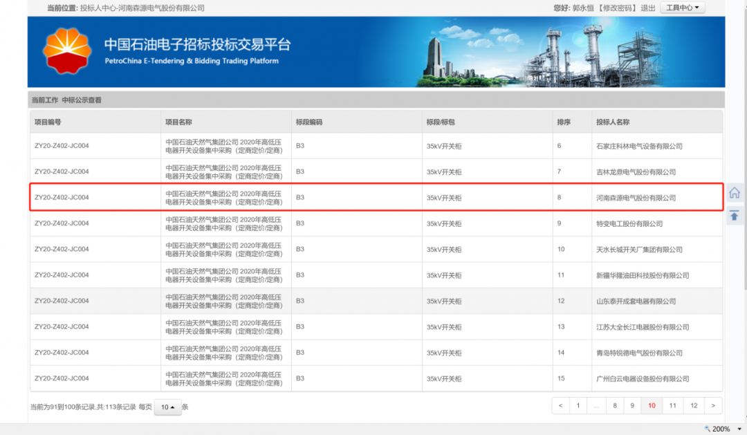 近日,中国石油天然气集团公司在“中国石油电子招标投标交易平台”公布了2020年高低压电器开关设备集中采购(定商定价)招标结果,森源电气的0.4kV低压柜、10kV开关柜、35kV开关柜等产品成功入围中石油甲级供应商名录。