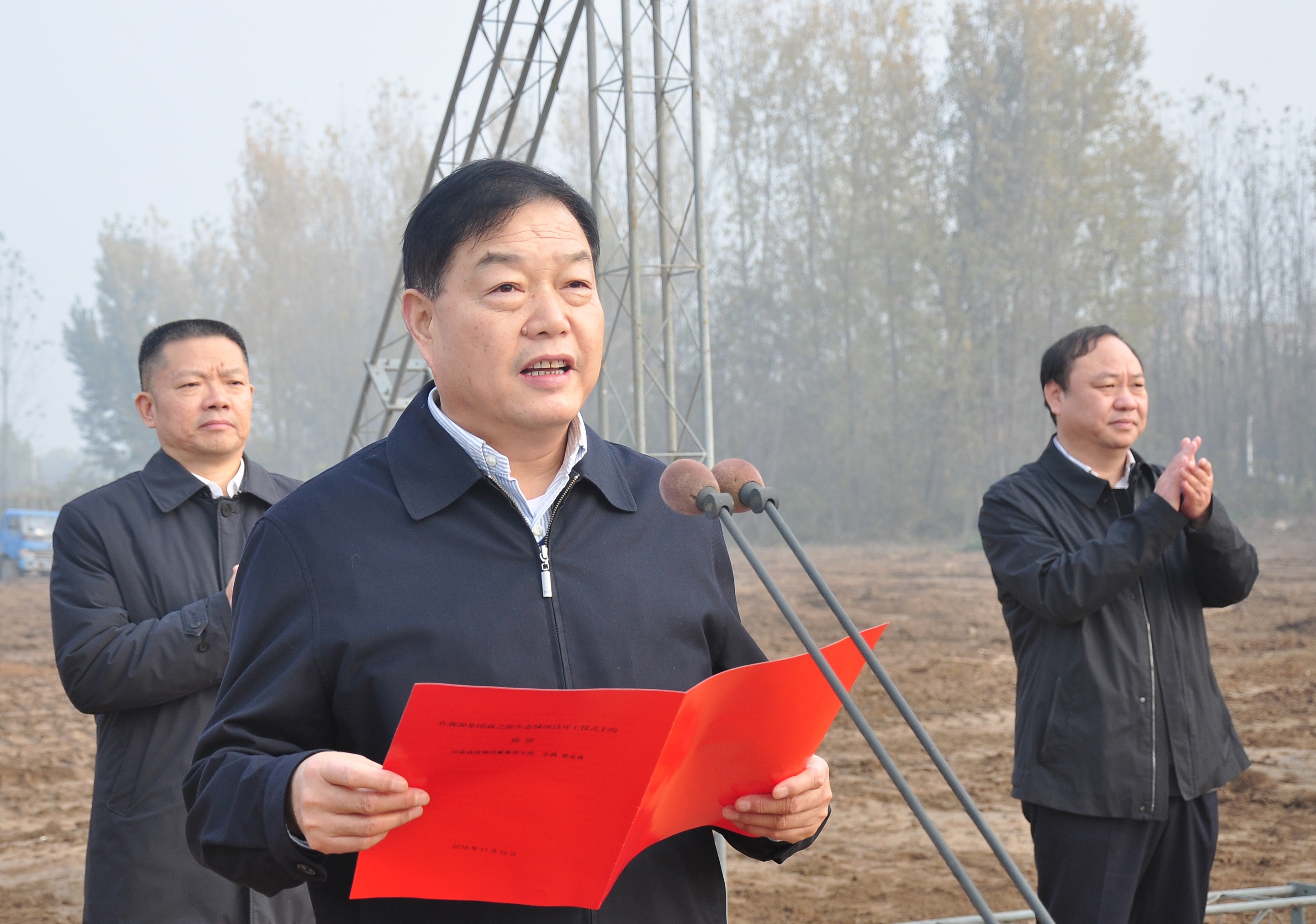 11月19日,森源集团森之源生态城项目开工仪式隆重举行。长葛市委书记刘胜利现场祝贺并宣布开工,市长尹俊营、市委副书记杨允志、常务副市长王建业、市委办主任刘少林、副市长张雪飞、市产业集聚区管委会副主任孙明亮等市领导及市直相关部门负责人出席,市产业集聚区管委会主任党根锦主持仪式。集团董事局主席楚金甫,集团领导乔清周、杨合岭、孔庆珍,中国建筑股份有限公司总经济师鲁贵卿,中建五局河南公司总经理高鹏参加开工仪式。