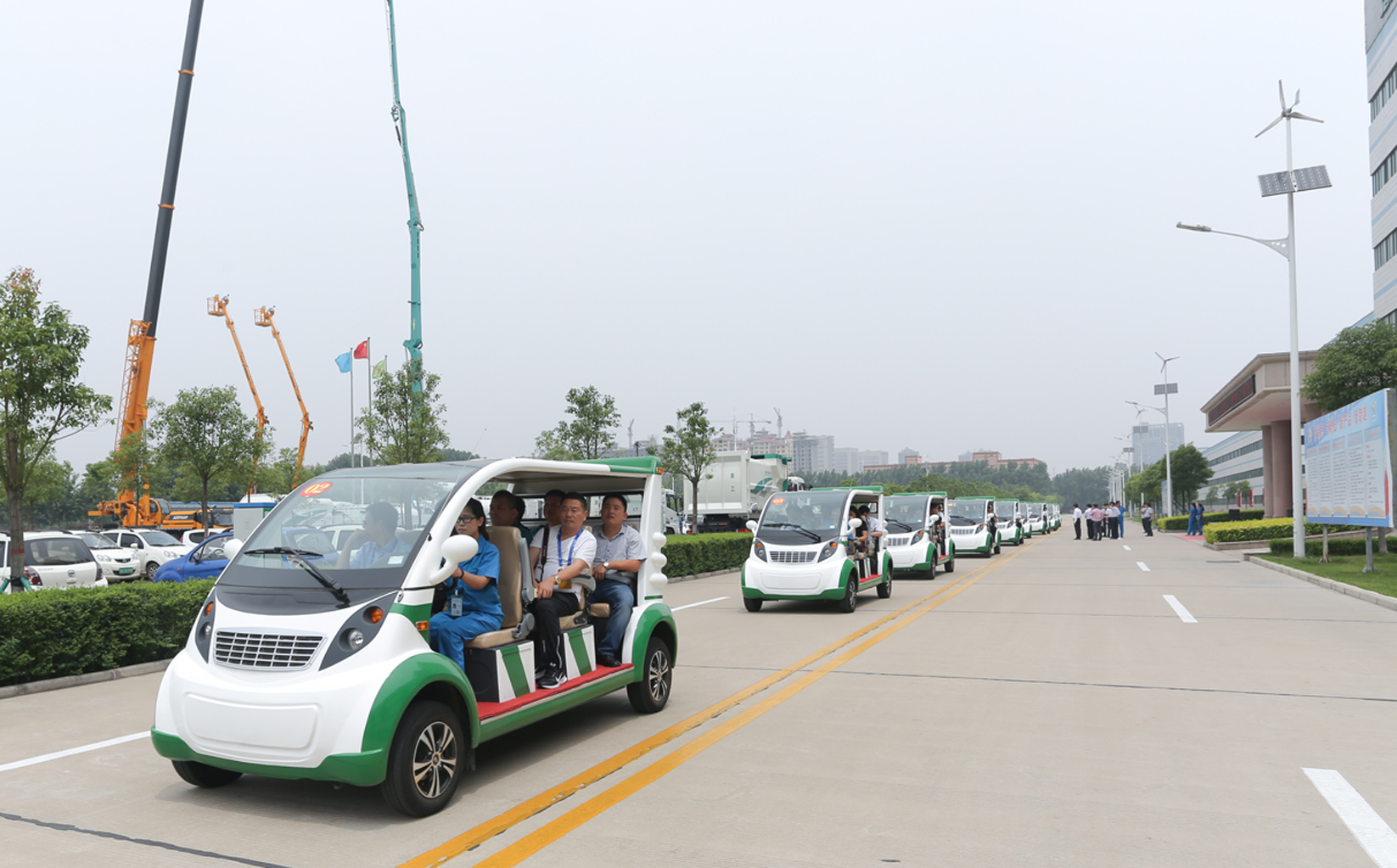 在森源集团重工板块,考察团近距离参观了森源自主研发生产的汽车起重机、混凝土高压泵车、垃圾清扫车、多功能抑尘车等产品,深入车间一线察看了各条专业化装配线,并着重调研了电动乘用车的生产和发展情况。