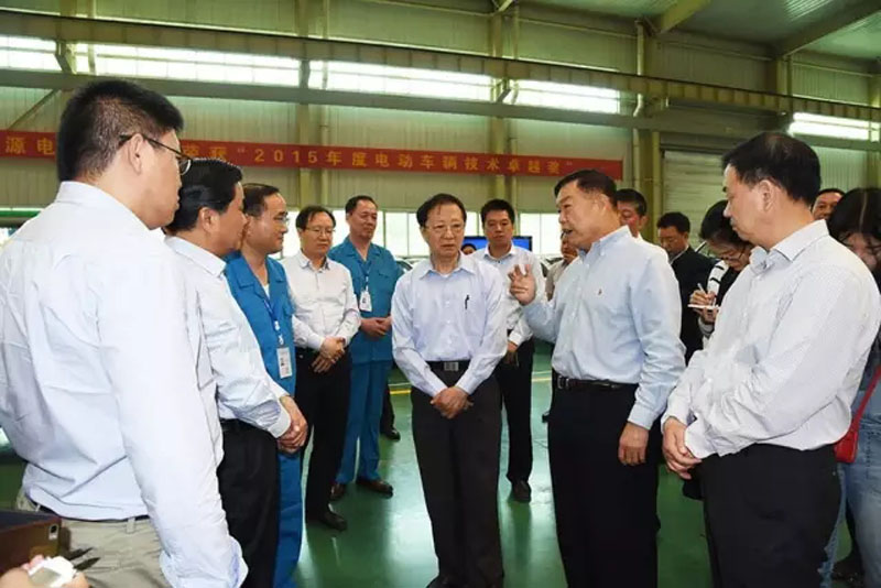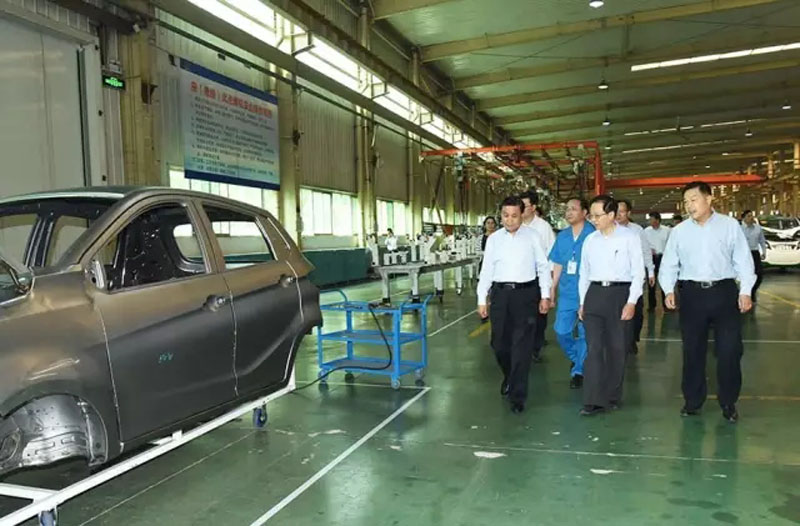在调研中,陈清泰下车实地观摩,详细了解了森源电动乘用车焊接工艺。当了解到该焊接生产线主要承担集团全正向自主研发车型的车身焊接试制,有力促进了电动乘用车新车型的快速试制验证时,陈清泰表示赞许。在电动乘用车装配车间,看到一排排刚下线的电动乘用车,陈清泰一行十分感兴趣,详细询问了时速、充电时间、续航等各项性能指标。了解到森源电动乘用车通过国家轿车质量监督检测中心型式试验和碰撞试验,各项性能指标均符合轿车标准,由于采用了更高效、安全的电池管理系统和制动能量回馈控制系统,时速最高可达145公里,续航里程比其他品牌同等功率电动车多出30%,陈清泰频频称赞。
