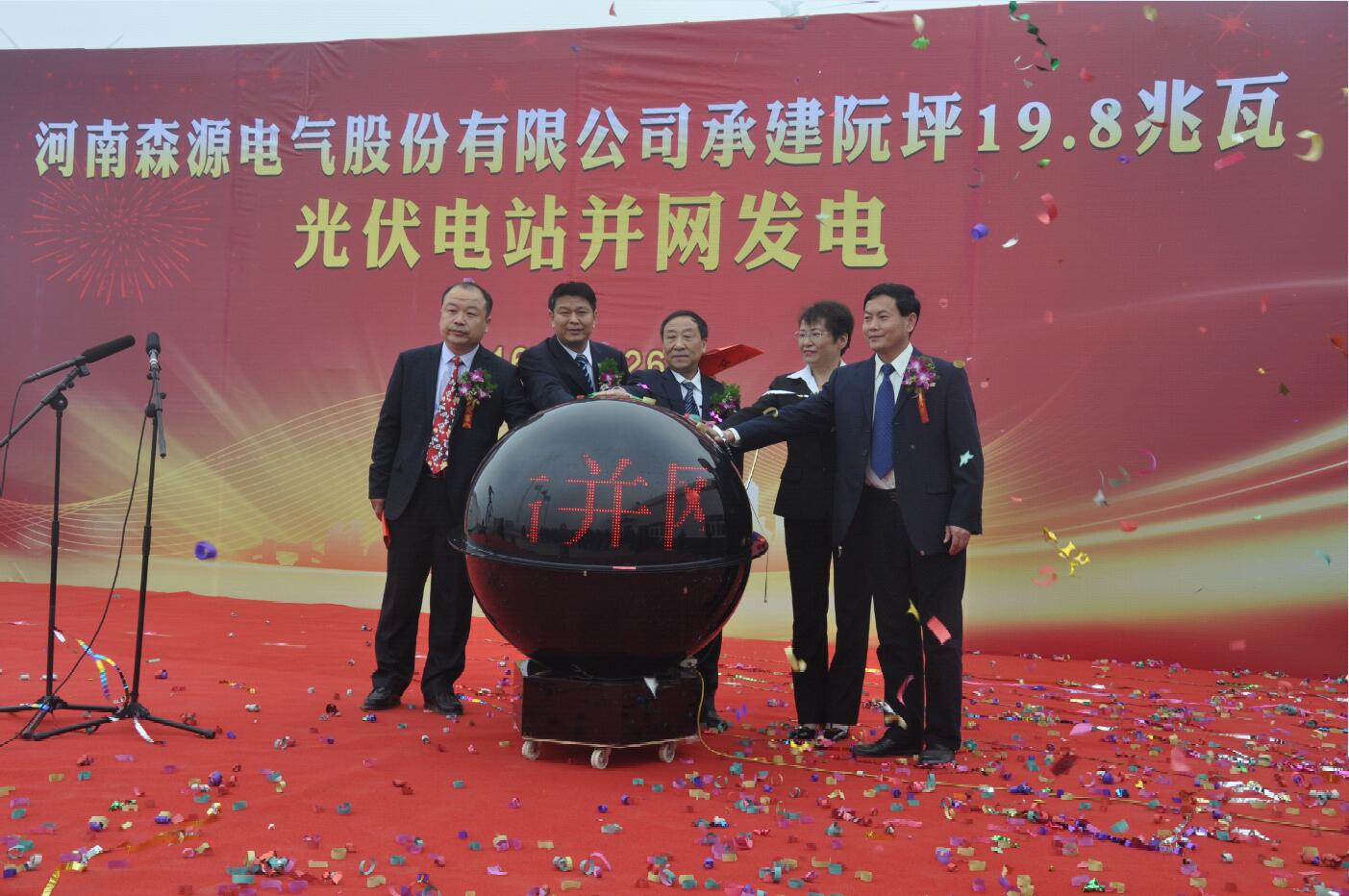 4月26日,由森源集团旗下森源电气股份有限公司承建的三门峡阮坪19.8兆瓦地面光伏电站经过最后的检测验收,顺利并网输电。集团领导杨合岭及光伏项目各部主要负责人出席仪式,与十余家媒体共同见证了这一激动人心的时刻。