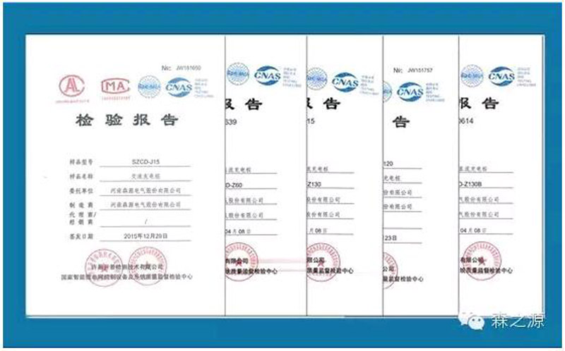 近日,河南森源电气股份有限公司喜讯连连,捷报频传!继成功研发SZCD-Z120和SZCD-J15两个型号的智能充电桩后,2016年最新研发的SZCD-Z60、SZCD-Z130和SZCD-Z130B三款智能型直流充电桩,均通过国家智能微网络买球(中国)控制设备及系统质量监督检验中心的产品型式试验,并顺利通过了由河南省科技厅委托许昌市科技局组织的科技成果鉴定。