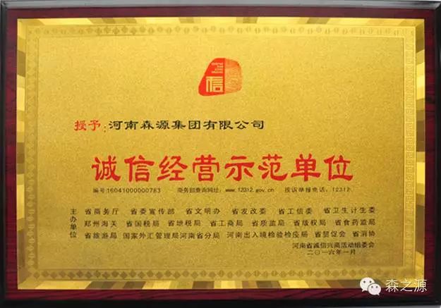 森源集团创立20多年来,秉承“服务于社会,贡献于国家”的企业理念,始终坚持把“守法经营、诚实守信”作为企业的立业之道、兴业之本,着力打造企业的商业诚信、社会诚信、个人诚信,依法经营,依法纳税,自觉维护市场经济秩序,时刻牢记民营企业和企业家的使命与社会责任,热心社会慈善事业,倾情回报社会。本次获评“2015年河南省诚信经营示范企业”,充分说明森源集团诚信经营理念和行动得到了社会各界一致认可。