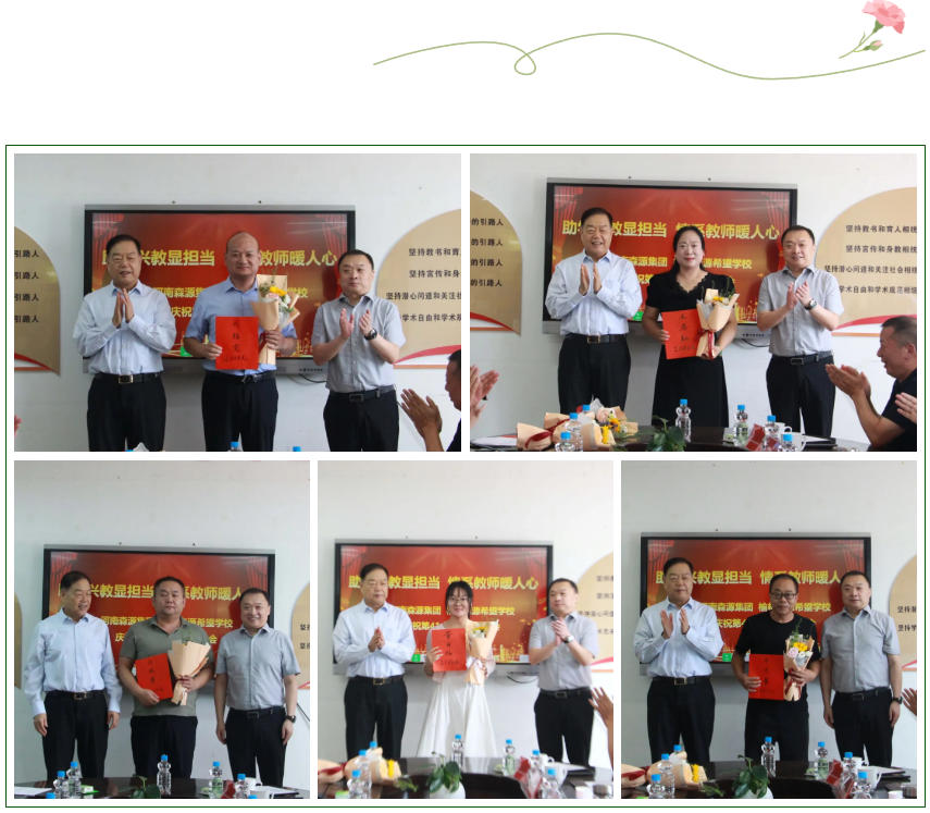 森源集团党委书记、榆林森源希望学校基金会理事长楚金甫向老师们送上节日的祝福,并借此机会,向榆林森源希望学校表示祝贺。在老师们的不懈努力下,学校的教学成绩得到稳步提升、学生的综合素质得到全面发展,并且获得多项荣誉,老师们的工作值得肯定。同时,他向老师们表示感谢,学校有着一支充满爱心的教师队伍,取得骄人成绩的背后是老师们无数个日夜的浇灌,感谢老师们对榆林森源希望学校教育事业的付出。今后,在党委政府的支持下,在学校老师们一如既往的努力下,希望学校能够取得更多更大的成绩,桃李满园、芬芳永远,不辜负榆林父老乡亲的重托。