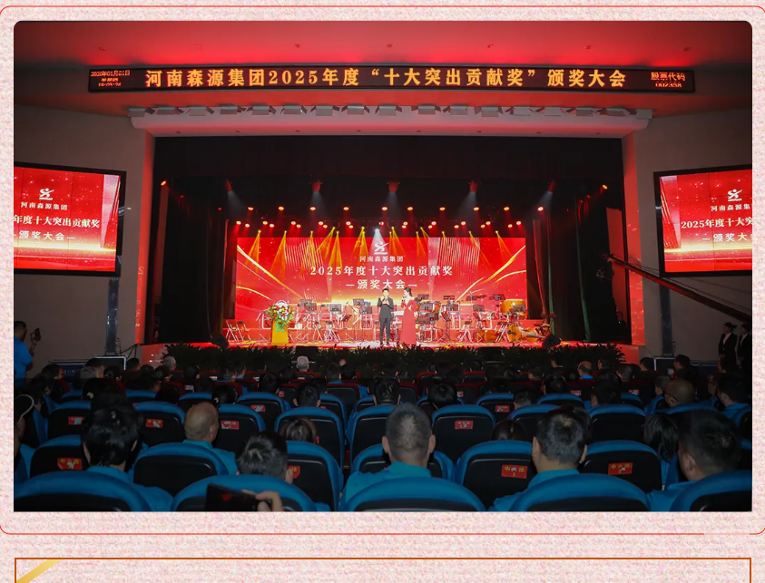 元月一日晚,森源大礼堂华灯璀璨、暖意融融、掌声阵阵,森源集团2025年度“十大突出贡献奖”颁奖大会在此举行。森源集团党委书记楚金甫携集团高管与公司干部员工代表齐聚一堂,共同表彰在2025年工作中表现突出的个人和团队,共庆元旦佳节。