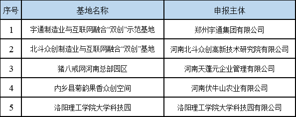 河南制造业“双创”平台、与互联网融合“双创”基地预选名单公示,19家企业入选 | 名单