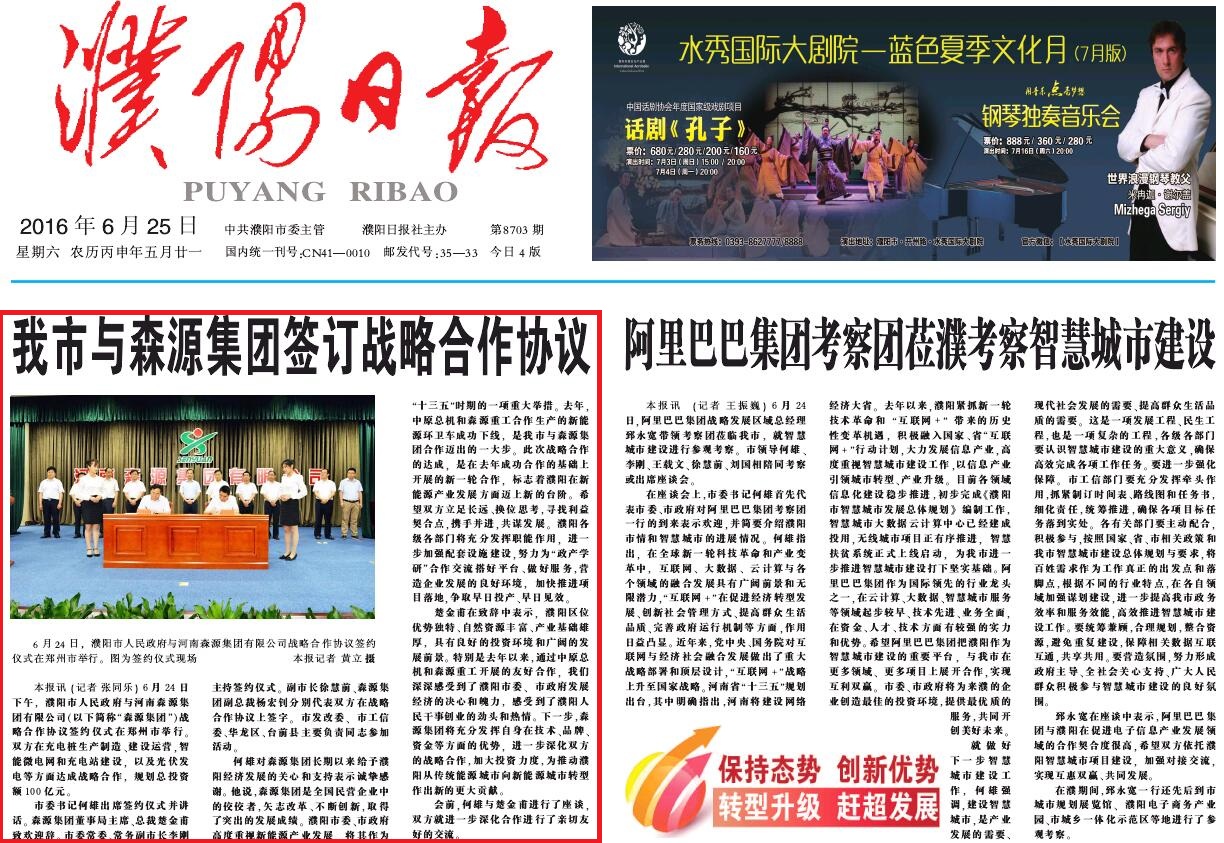濮阳日报——濮阳市与森源集团签订战略合作协议 发布日期: 2016-06-27 分享 加入收藏 6月25日,《濮阳日报》头版头条刊发了濮阳市与森源集团签订战略合作协议的相关报道: 上一条 许昌电视台——“民营经济再扬风帆”专题报道之森源集团(第1期) 2016-06-20 下一条 许昌日报头版报道——“立体创新”催生我市 首家“200亿企业” 2016-07-08